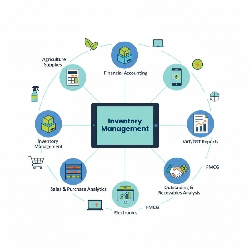 Designed for distributors, retailers, FMCG businesses, electronics dealers, and multi-location operations, the system brings inventory, billing, and financial tracking together on one powerful platform.